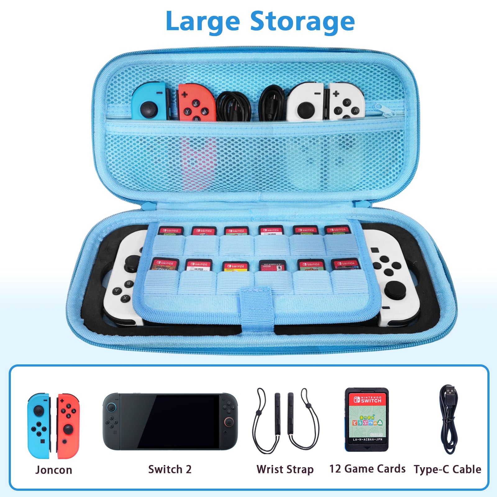 - [Large storage] The inner pocket made of three layers of dense mesh, provides large storage for necessary gadgets like Joy-Cons, cables, earphones, and no interfere with the console when it's closed.