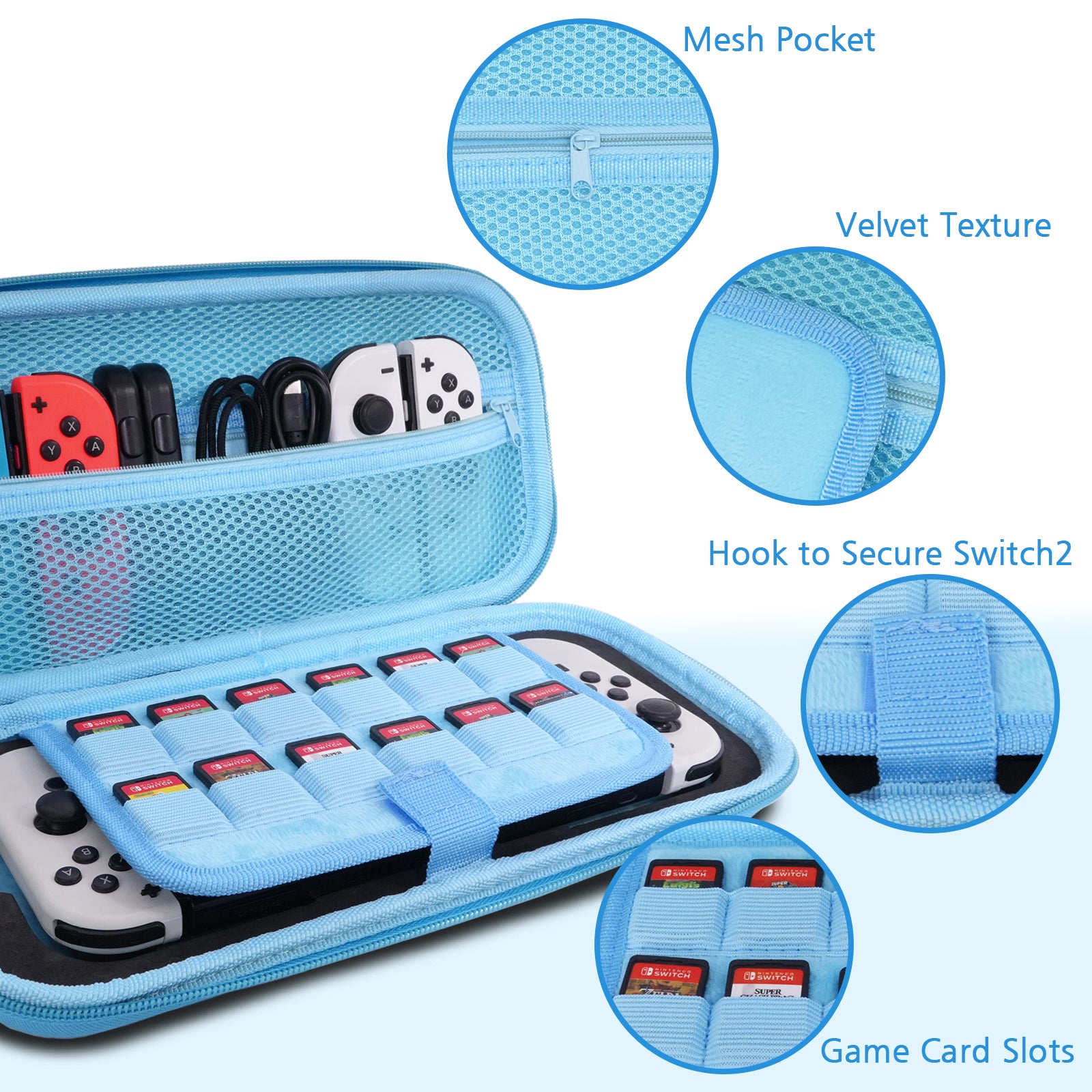 TIKOdirect Glitter Blue Carrying Case for Switch 2(2025)/ Switch/ OLED