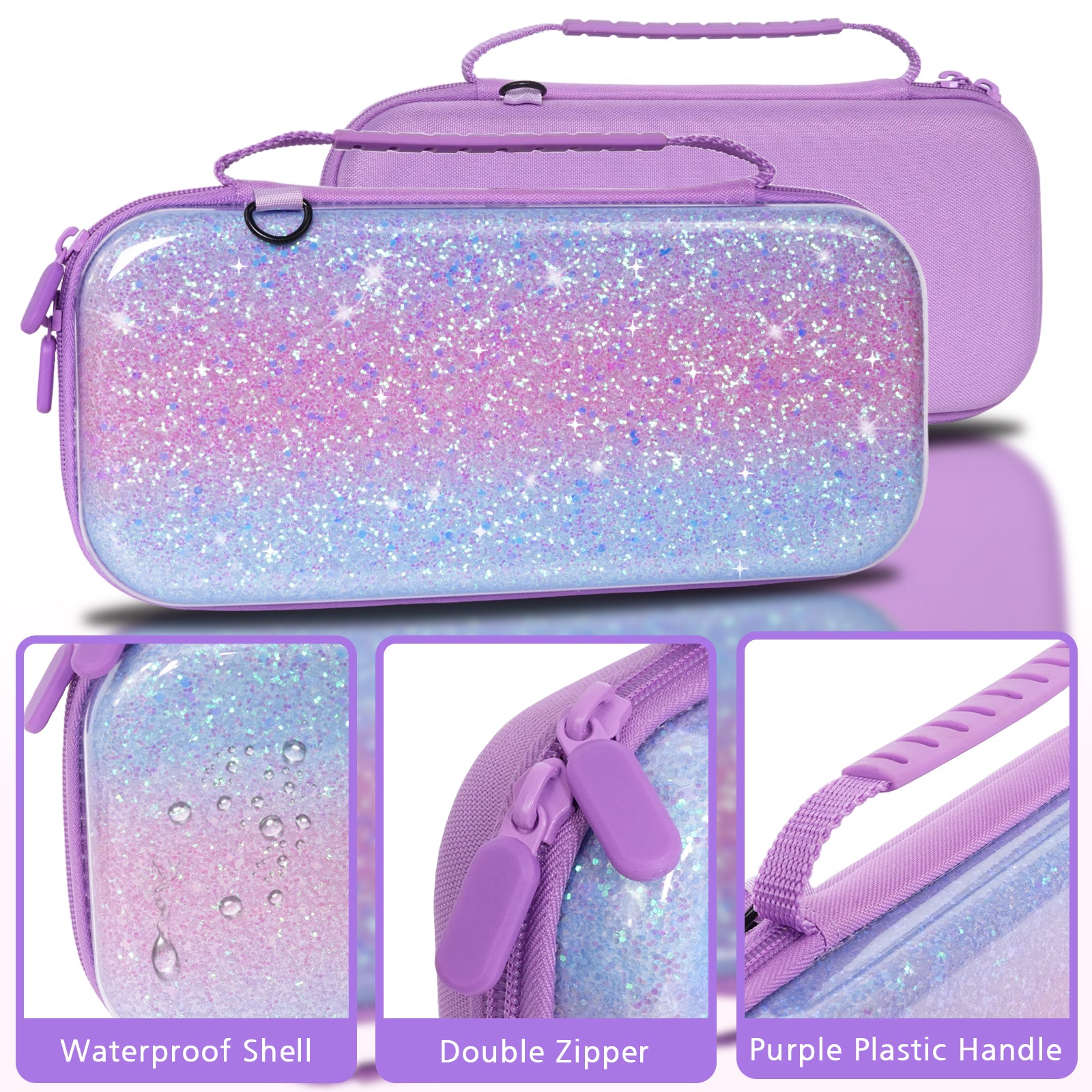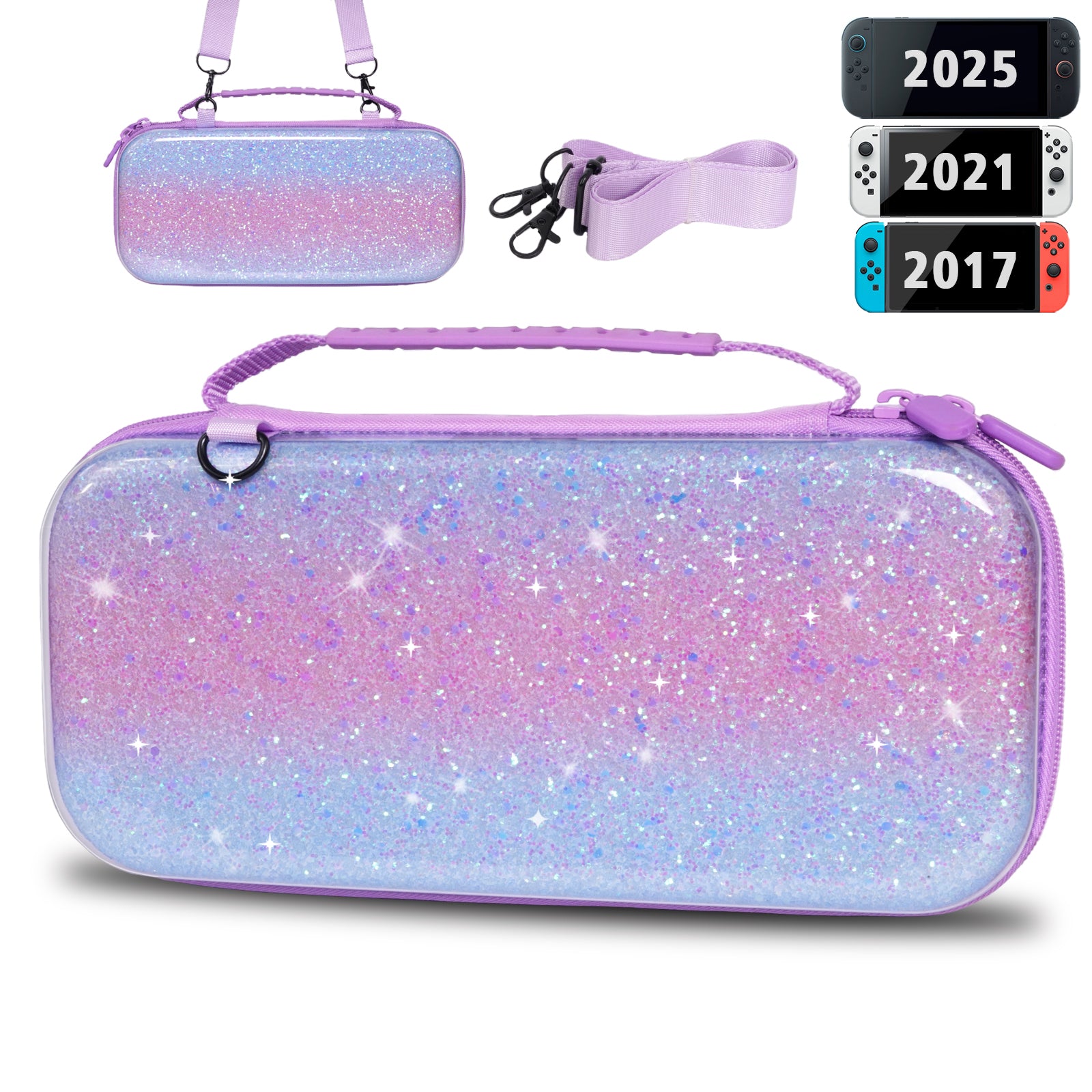 TIKOdirect Purple Glitter Carrying Case for Switch 2(2025)/ Switch/ OLED