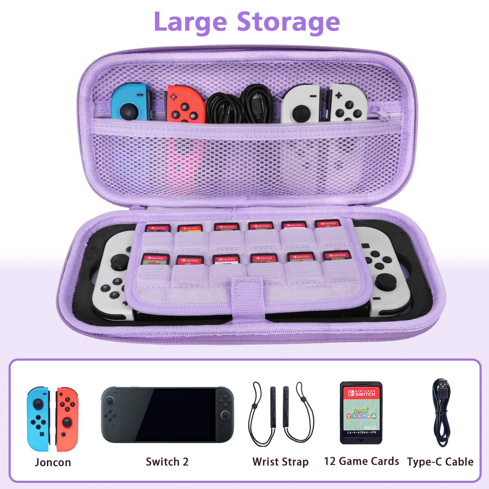 - [Large storage] The inner pocket made of three layers of dense mesh, provides large storage for necessary gadgets like Joy-Cons, cables, earphones, and no interfere with the console when it's closed.