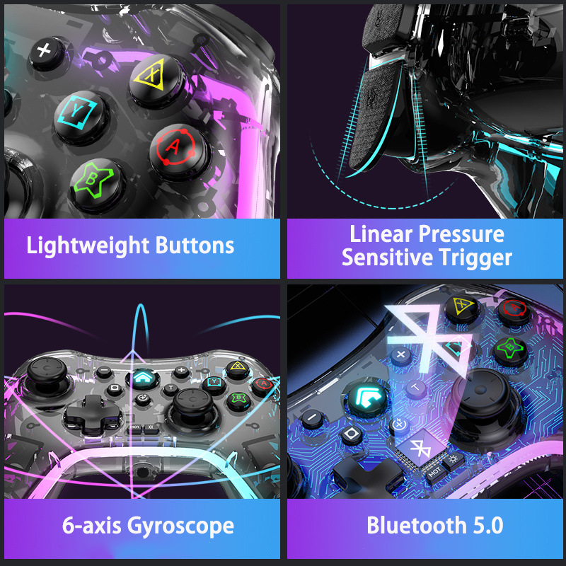- Great Gaming Experience: Made of high quality materials, making the 360° joystick and buttons more sensitive and smoother. Product has built-in dual vibration motors, which bring players different vibration effects according to the game scene. Make players feel more immersed in the game, With the 6-axis gyro sensor, product can detect the inclination of the controller and make a quick response, Allow players to experience more fun while playing games.